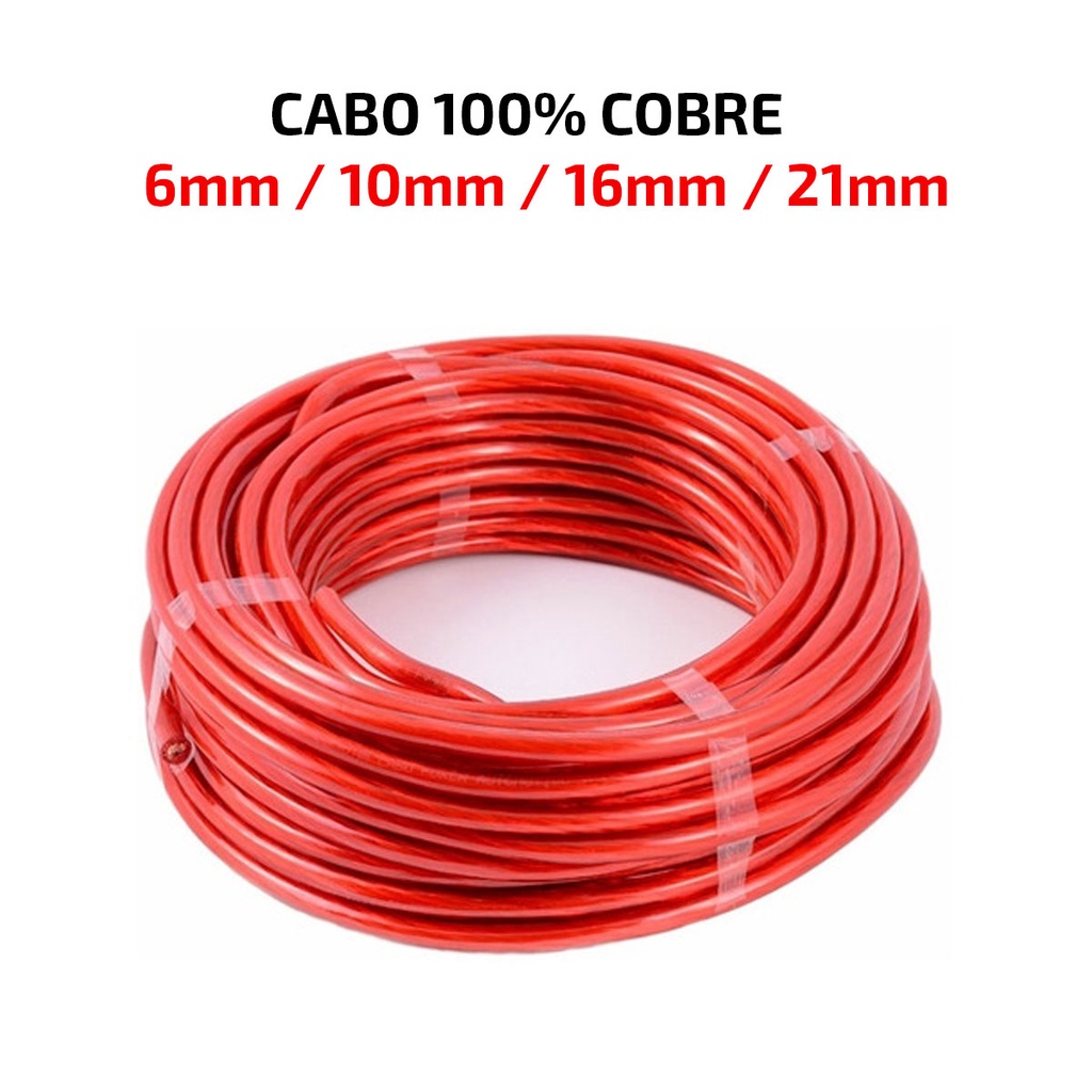 Cabo Fio De Bateria 5 Metros - 21mm 16mm 9mm 6mm - Vermelho Technoise