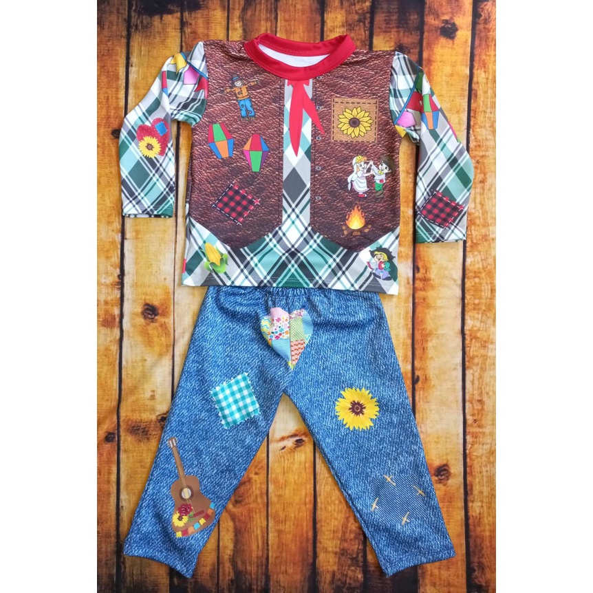 Conjunto camisa manga longa + calça infantil Caipira - Festa Junina
