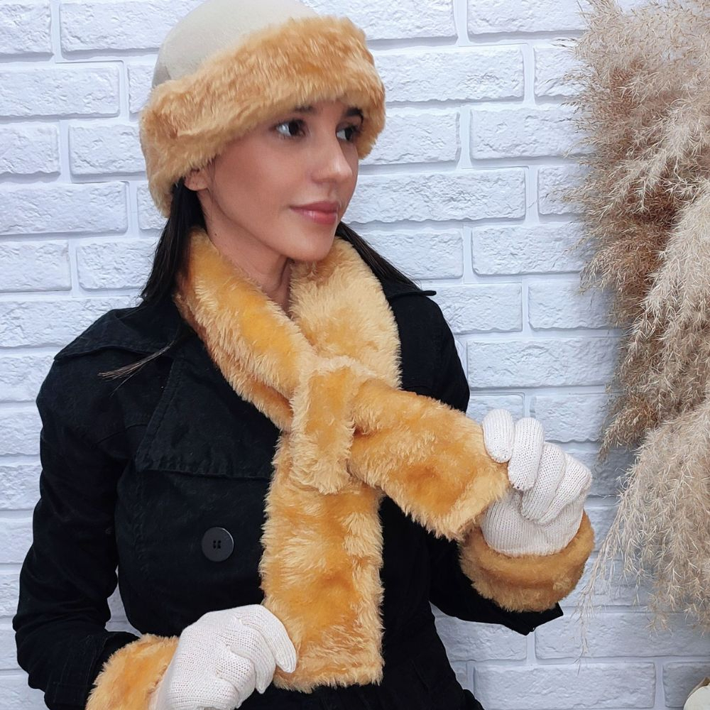 Conjunto de Inverno de Luxo Touca de Soft com Barra em Pelúcia e Cachecol de Pelúcia Proteção e Estilo em um Único Produto