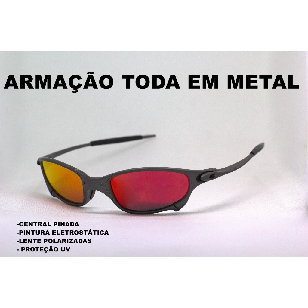 Oculos de Sol Juliet 24K Lupa Polarizado Pinado X Metal Penny Doublex Juju Dourado Armação todo em Ferro