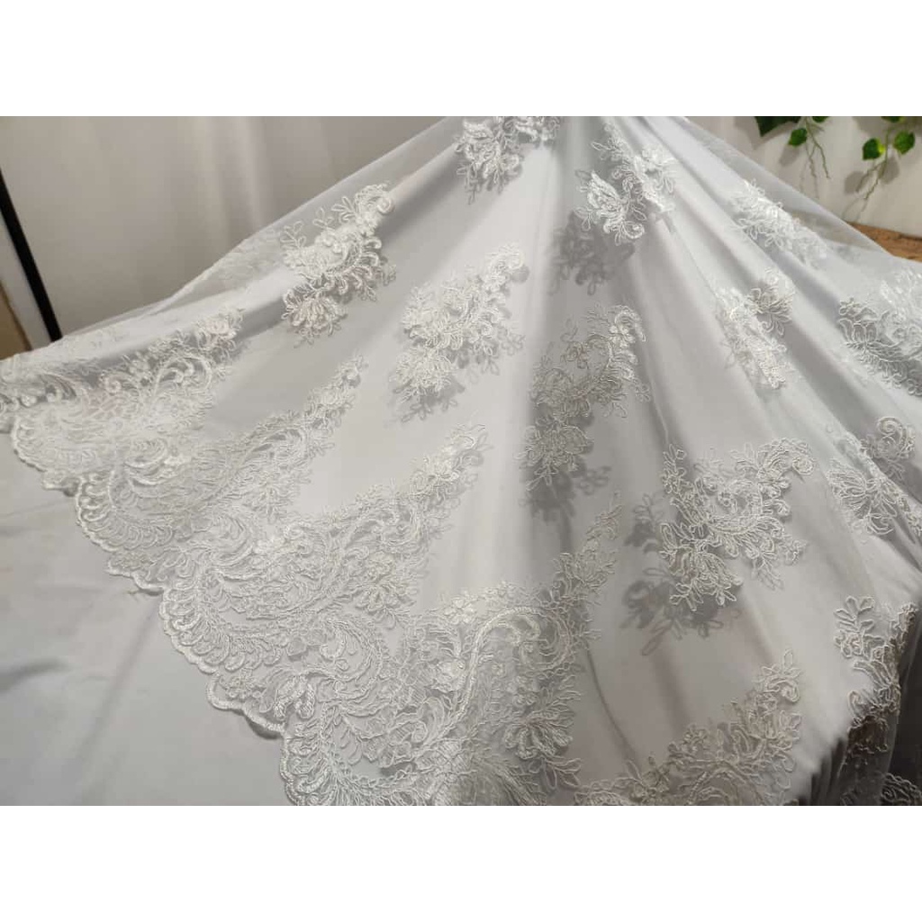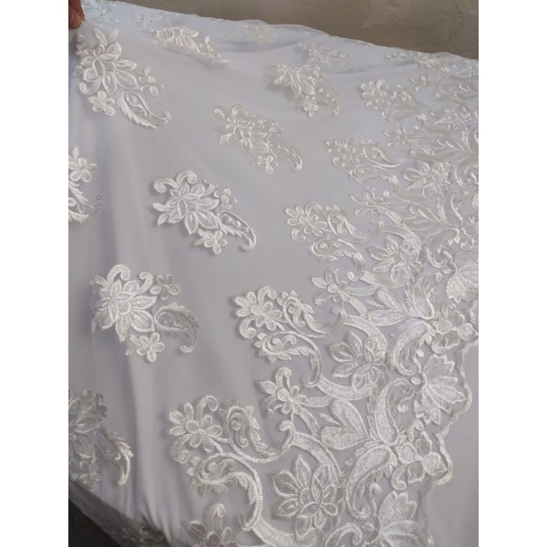 Renda tule bordado em flores arabescas branco noiva 0.5x1.35(meio metro)