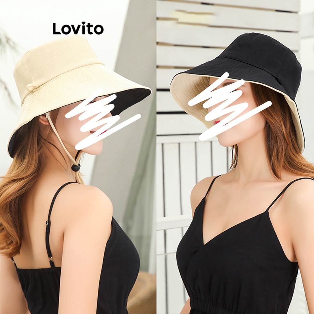 Lovito Casual Chapéu Feminino Liso com Costura no Tecido LNA28266 (Preto)