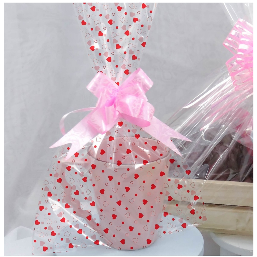 Saco Transparente Celofane Decorado 30x45 Com 50 Unidades + 50 Laços 18x36