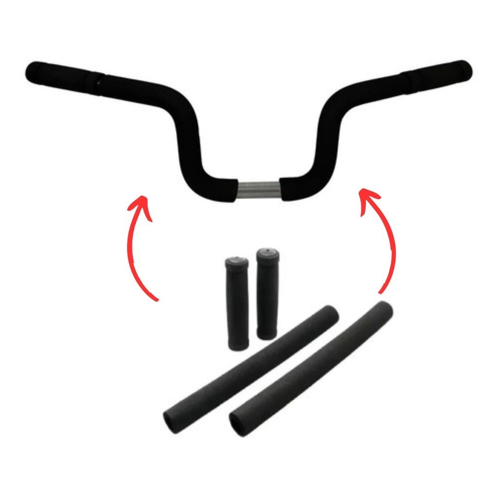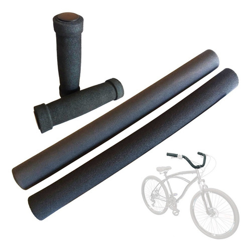 Guidão Bicicleta Alto Bike Caiçara Beach Praiana + Punho Manopla Espuma 4 peças - Preto