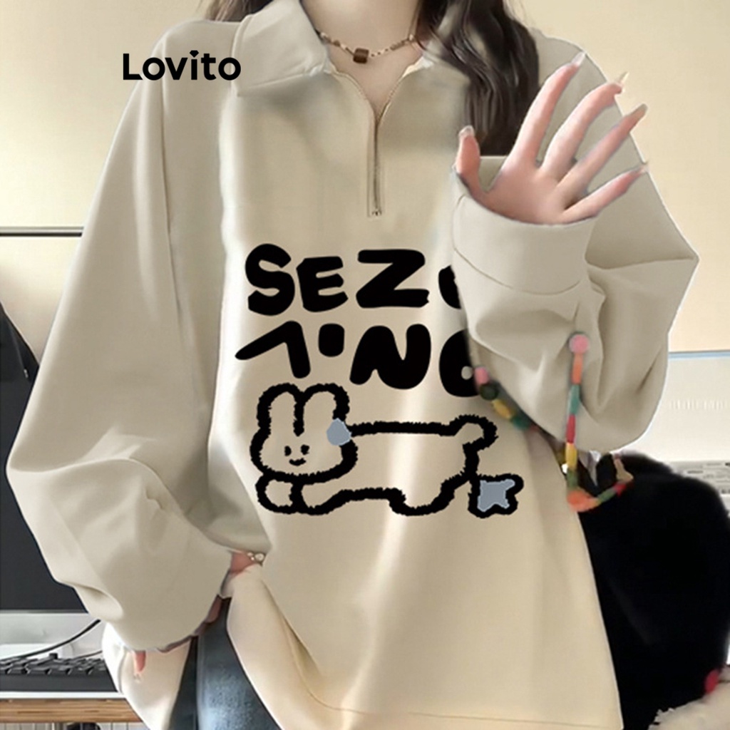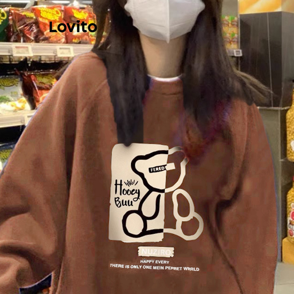 Lovito Moletom Casual Com Padrão De Desenho Animado Para Mulheres LNA36152 (Café)