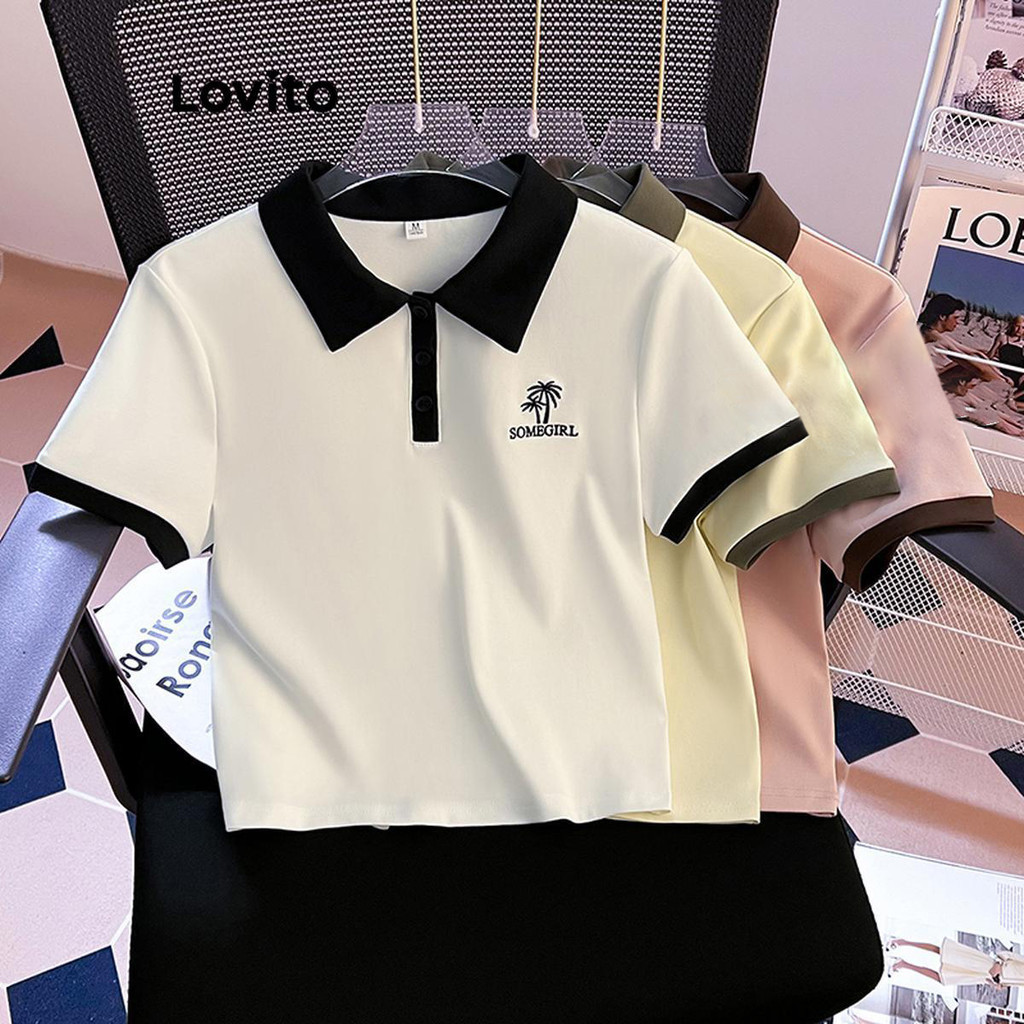 Lovito Casual Camiseta Feminina de Desenho Básica com Gola Redonda e Manga Curta LNE07073 (Branca)
