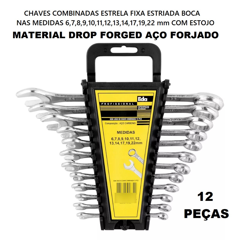 Jogo Kit Chave Combinada Completo 6 À 22mm Eda Profissional 12 Peças