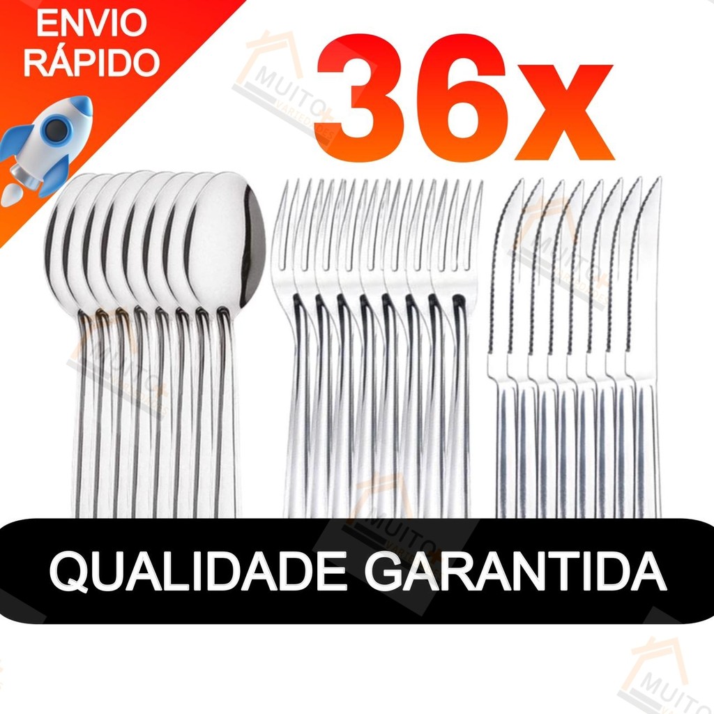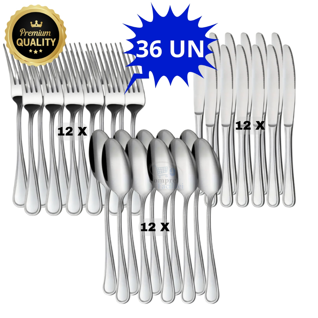 Jogo de Talheres 36 peças Aço Inox 12 Facas 12 Garfos e 12 Colheres de Mesa Jantar