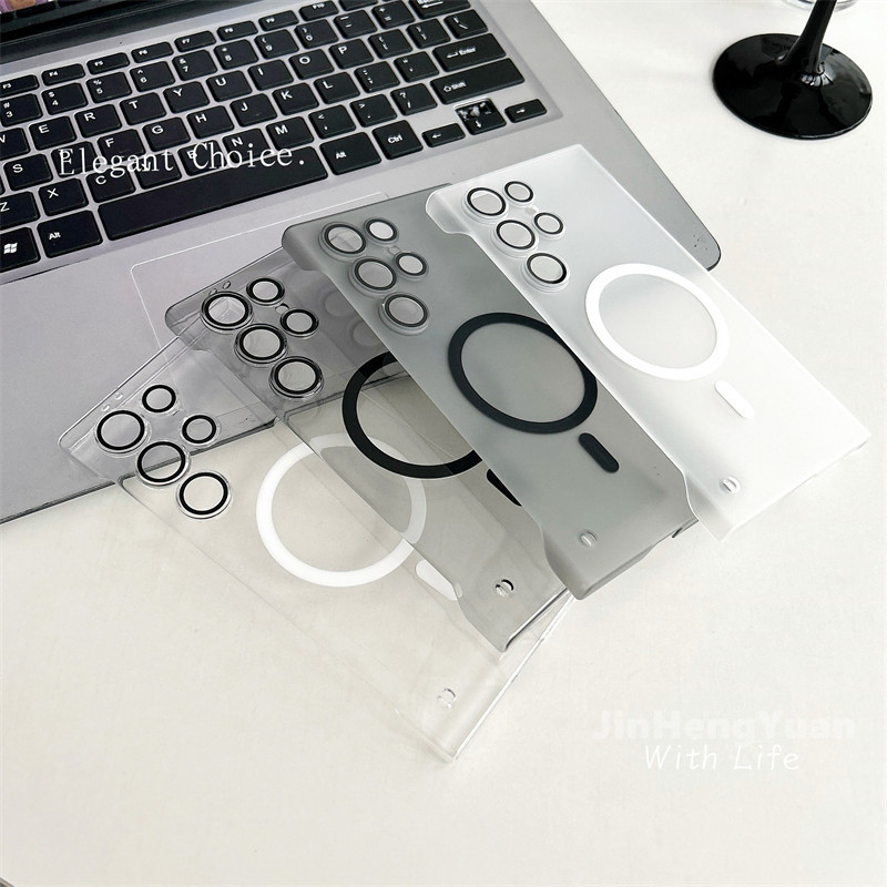 Capa Magnética Sem Bordas Para PC Ultra-Fina Samsung Galaxy S24 S23 S22 Plus S24 + S23 + Proteção De Filme De Lente Transparente Com Furo De Corda Pendurado Caixa Fosca