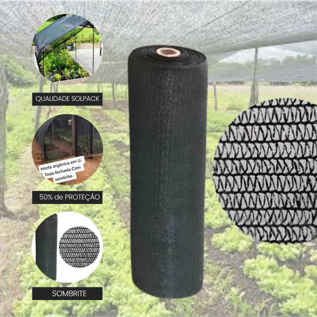 Tela Sombrite Raschel 50% 2m Por 20m Preta Proteção e Sombreamento de Estufa Horta Flores Anti UV