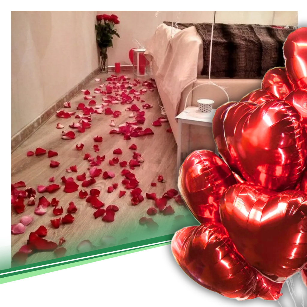 Kit Romântico 300 Pétalas Artificiais + 6 Balão Coração + TE AMO