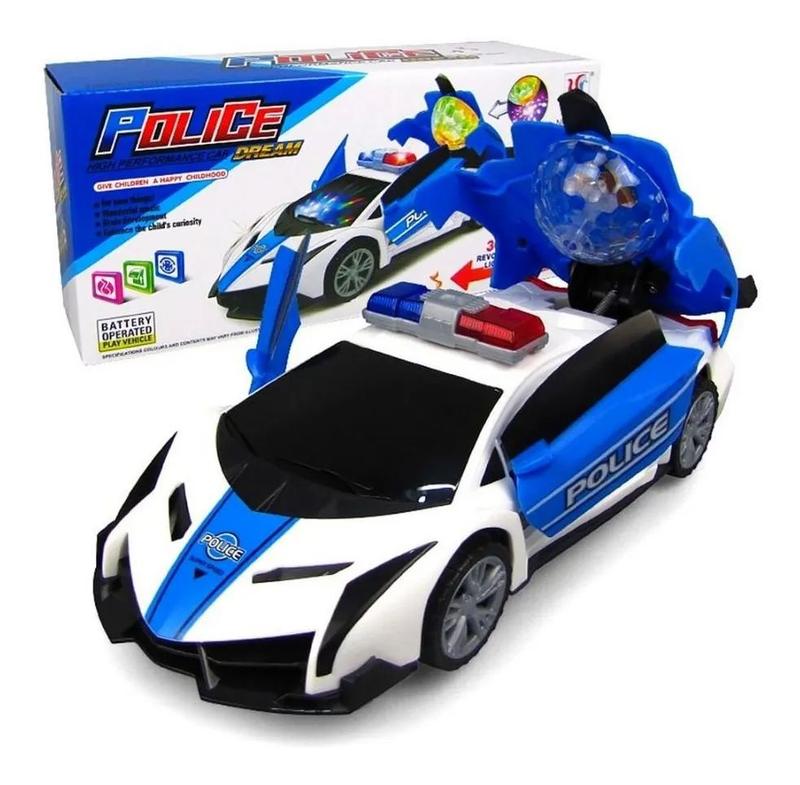 Carrinho Super Robô Policia Transformes a Pilha Com Luzes Som Bate e Volta Envio Imediato