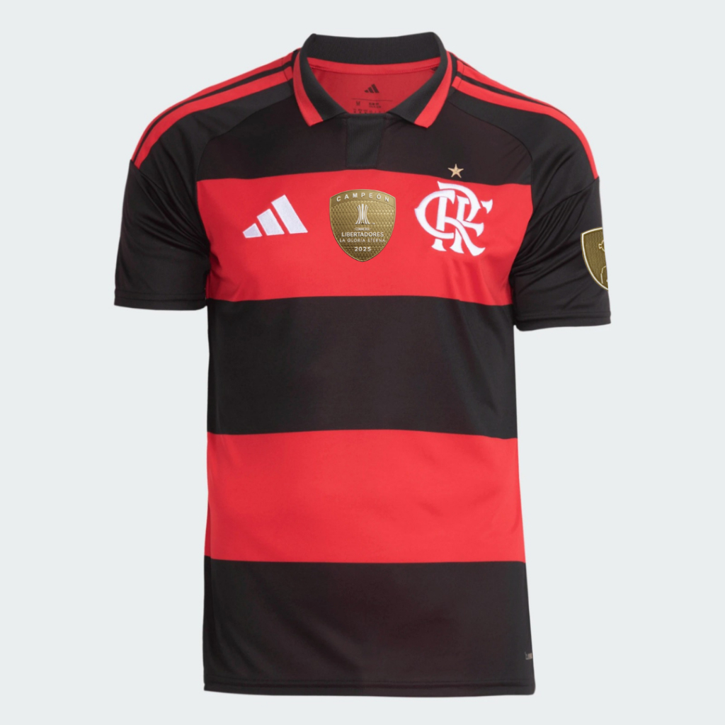 Manto Flamengo Masculina Jogo 1 Adidas 2026 + Kit Patches CAMPÉON Libertadores 2025