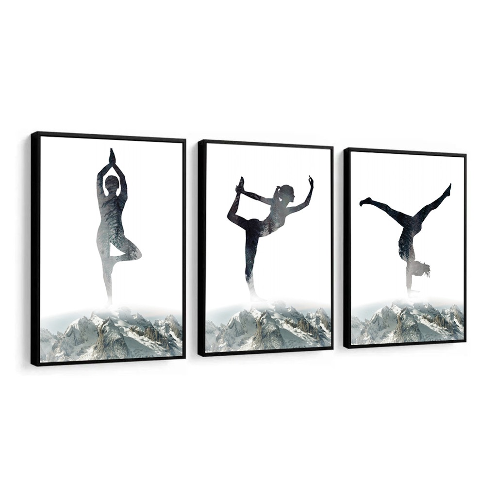 Kit 3 Quadros Decorativos Yoga Pilates Meditação Conjunto Com Moldura