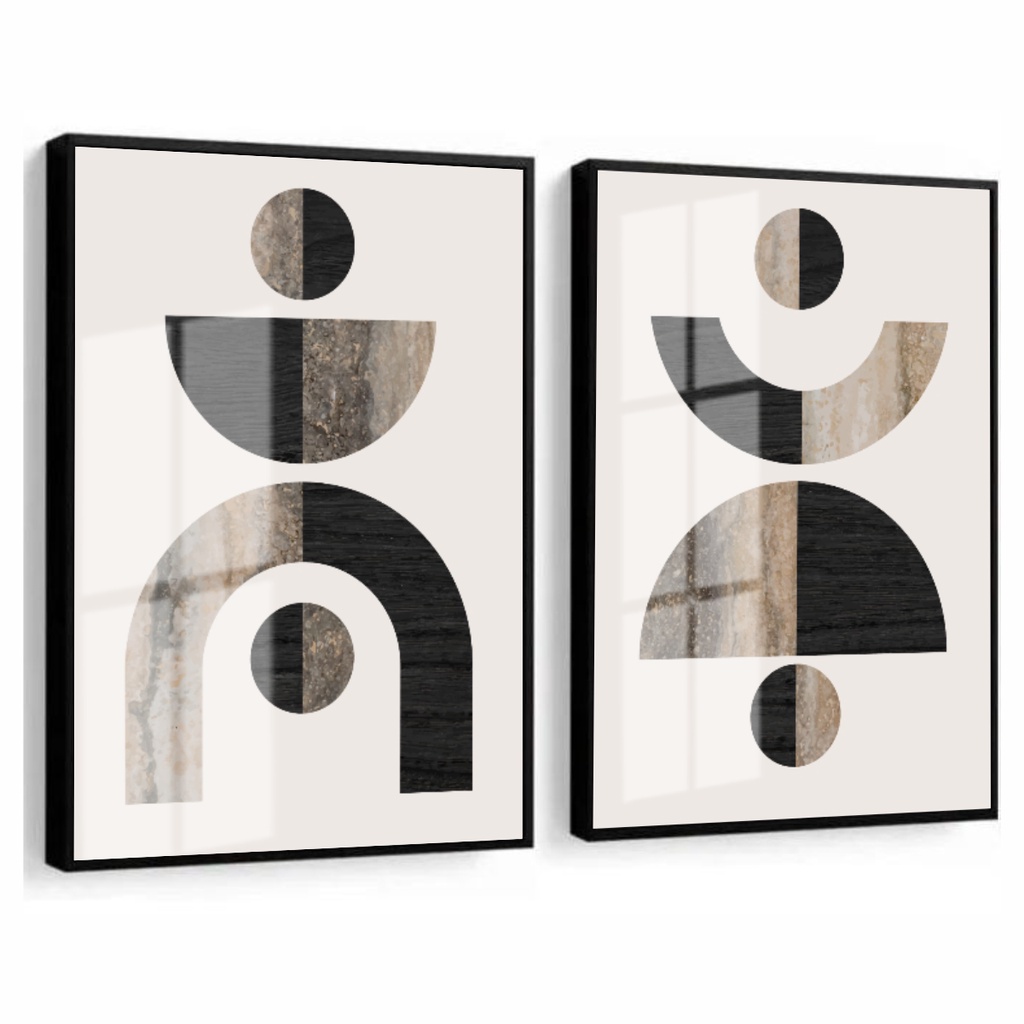 Quadros Decorativos Abstrato Geométrico Formas Para Quarto Sala Casa Corredor Conjunto Com Moldura e Vidro