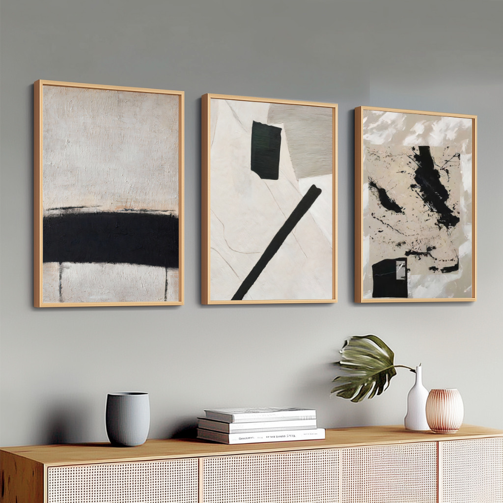 Conjunto 3 Quadros Decorativos Modernos Grande Sala Moldura 50X70 cm Arte Abstrata