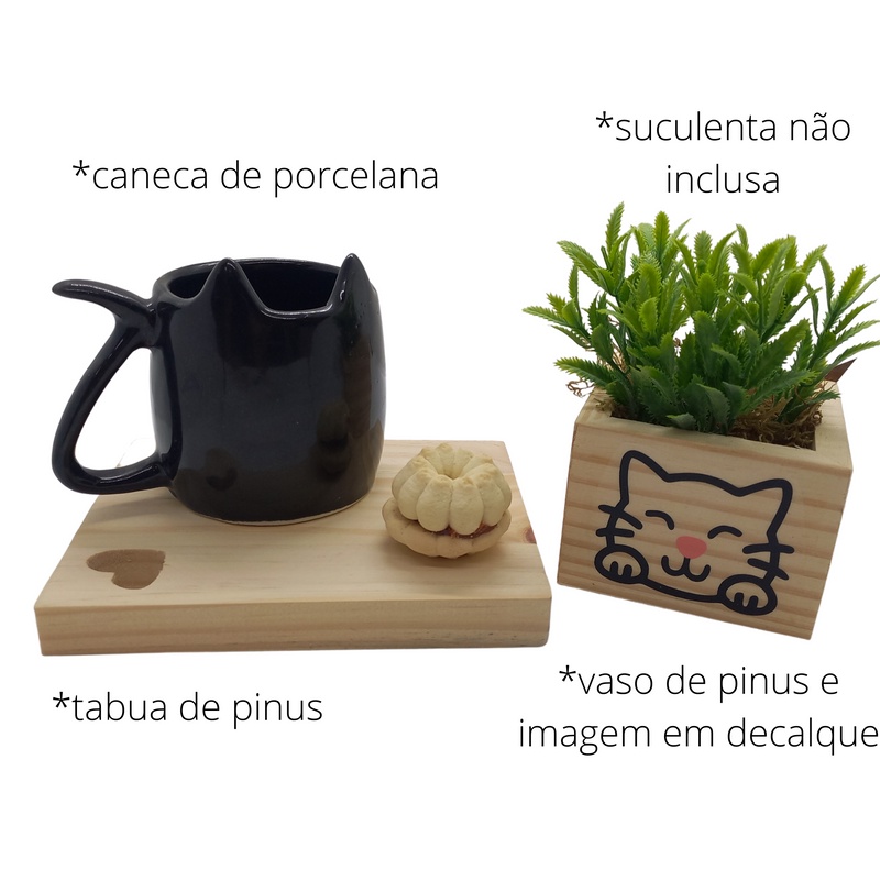 kit 3 peças caneca 3d gatinho presente amantes de gato