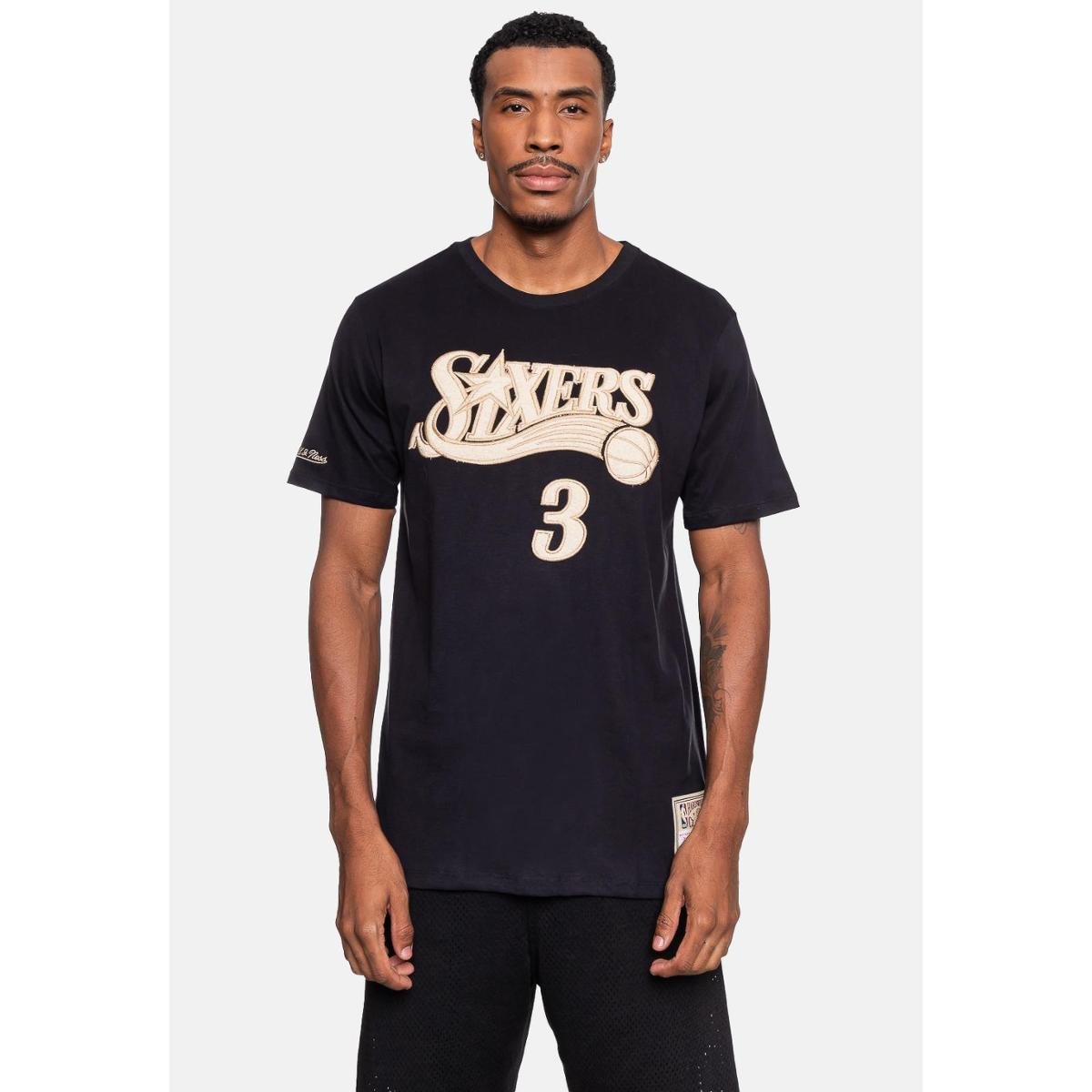 Camiseta Mitchell & Ness Black On Black Philadelphia 76ERS Masculino