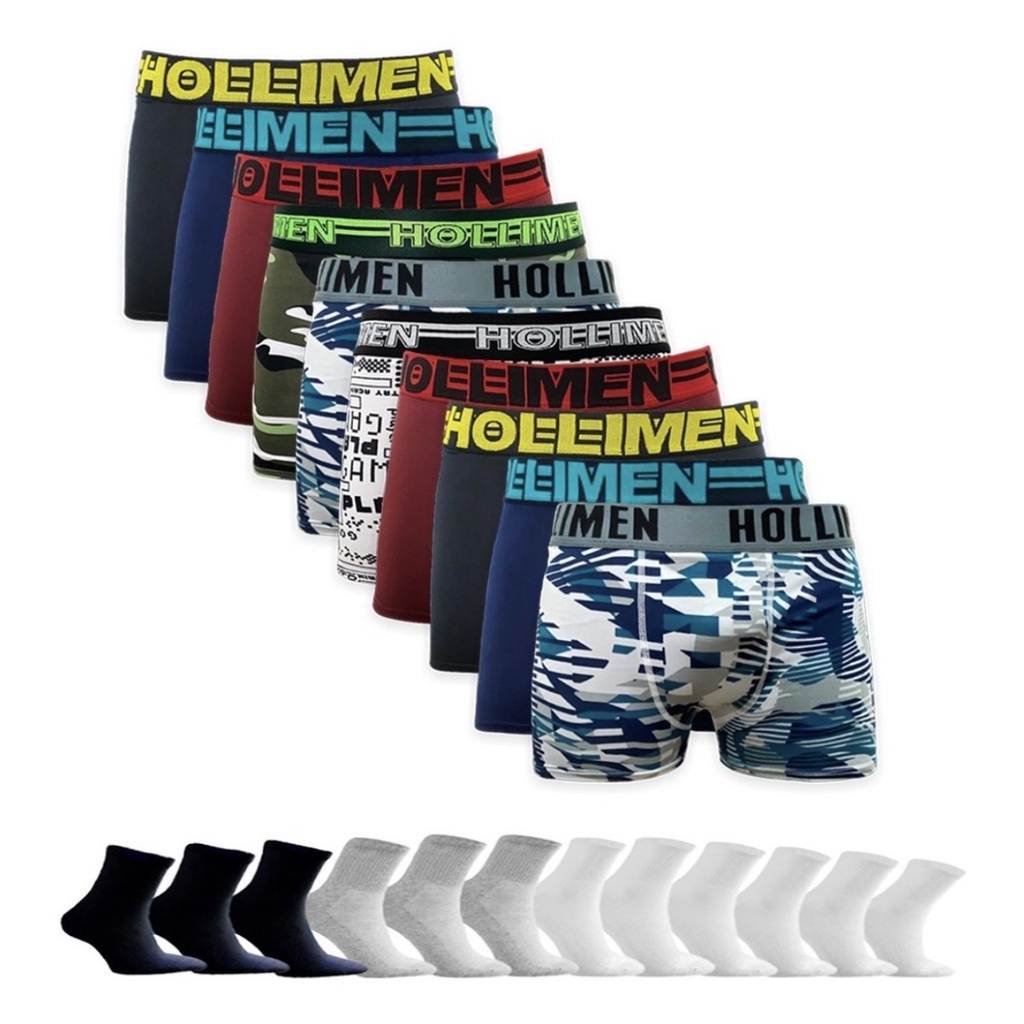 Kit 10 Cuecas Boxer Microfibra + Kit 12 Meias Masculinas