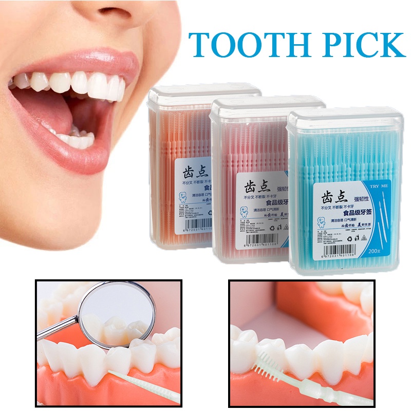 200PCS Escova Interdental Palito De Dentes Descartáveis De Higiene Oral Limpeza Dos