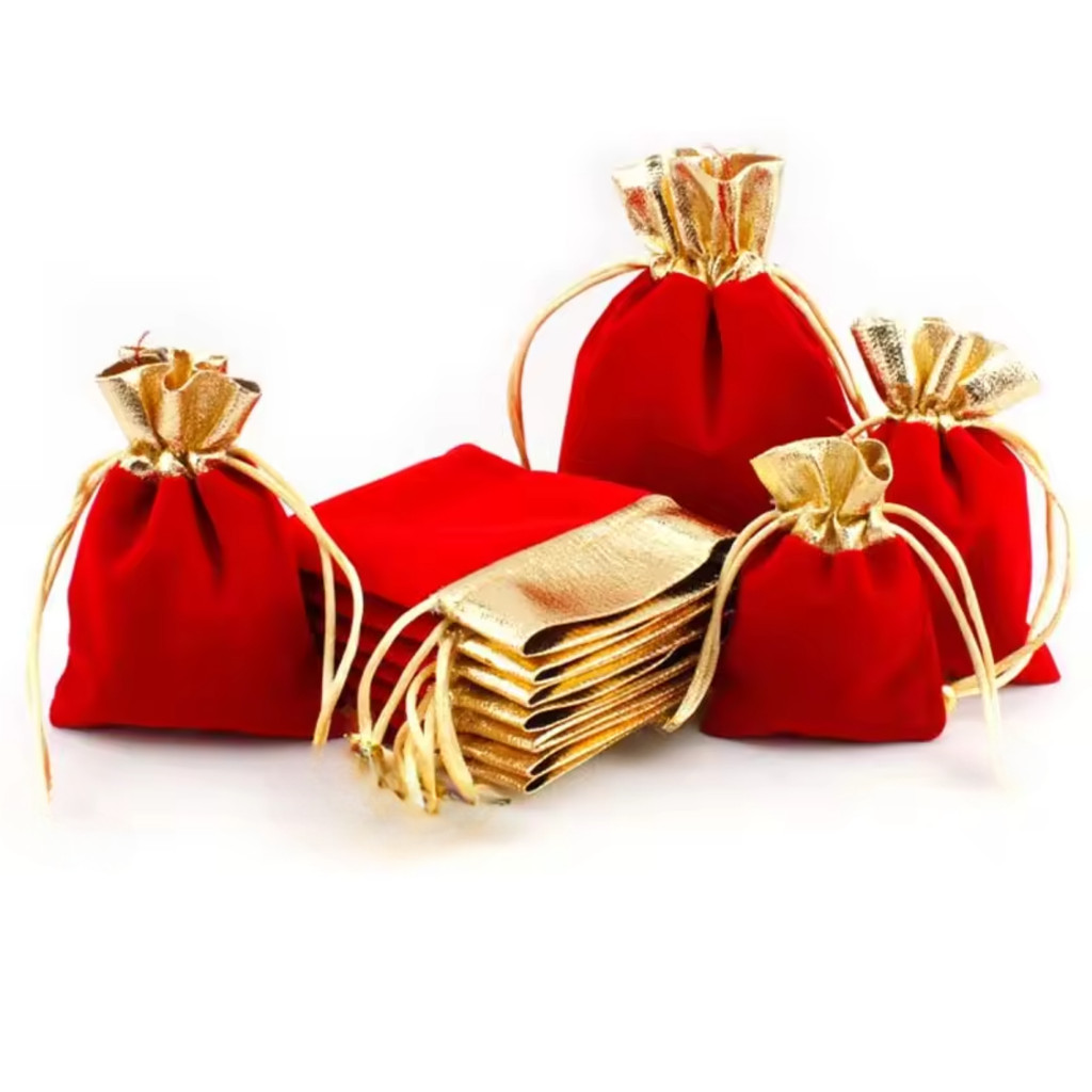 Kit 10 / 20 / 50 Saquinhos Saco de Veludo 7x9 / 10x12 Lembrancinha Natal Jóias Festa Casamento
