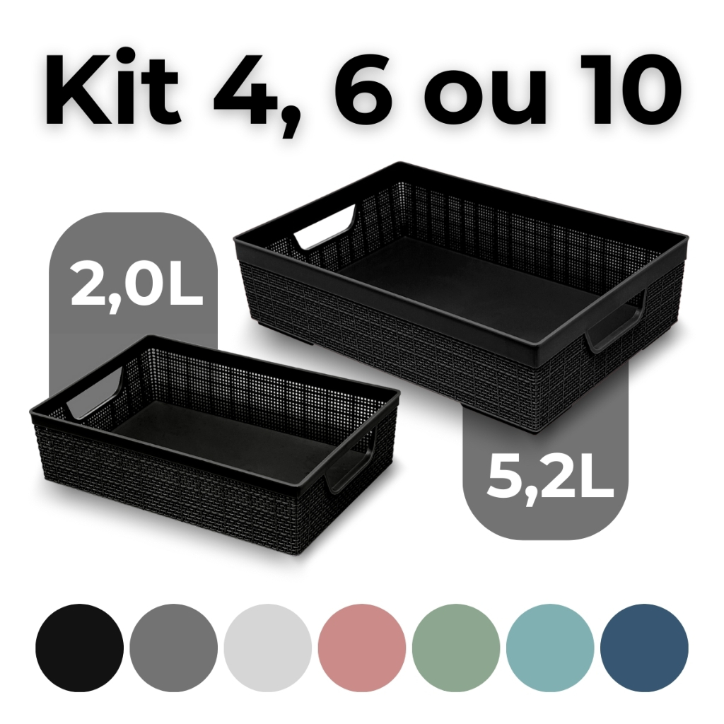Kit 4, 6 ou 10 Cesto Organizador Pequeno Médio Multiuso de Plástico 2L e 5,2L Rosa Preto Branco Etc