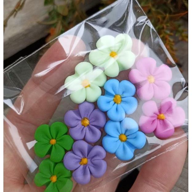 10 MINI APLIQUES DE FLORES EM BISCUIT.