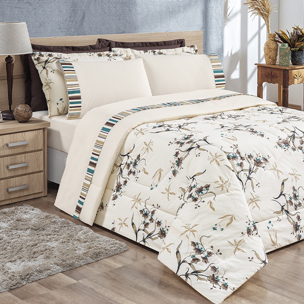 Kit Edredom Holanda Estampado 3pçs Casal Queen 180 Fios 80% Algodão Palha