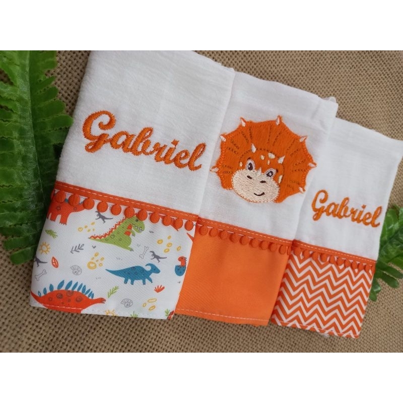 Fralda de boca 3 paninhos bordados com bichinhos PERSONALIZADO com nome