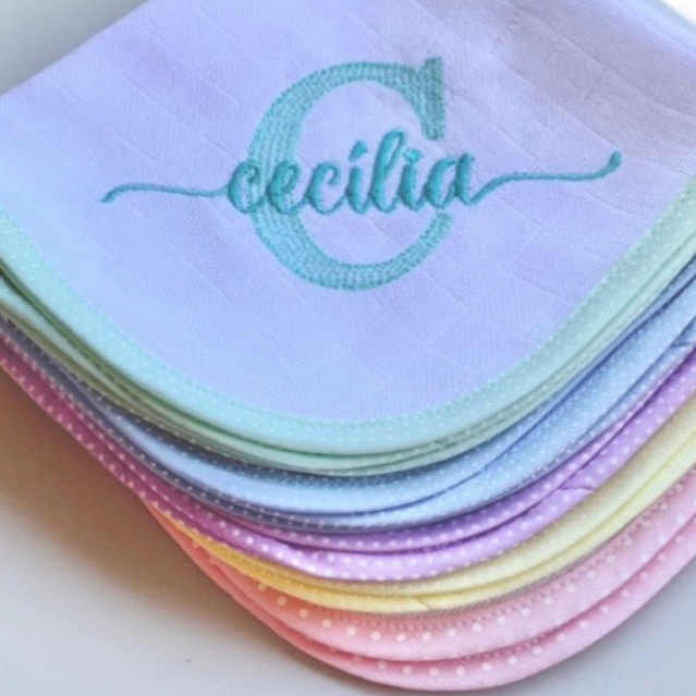 Manta de Bebê Fralda Passeio e Fralda de Boca Bordada Personalizada kit com 3 peças