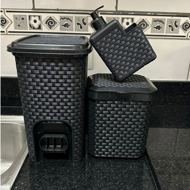 Conjunto Cozinha Lixeira de Pia 05 litros+ Porta Detergente+ Lixeira 07 litros