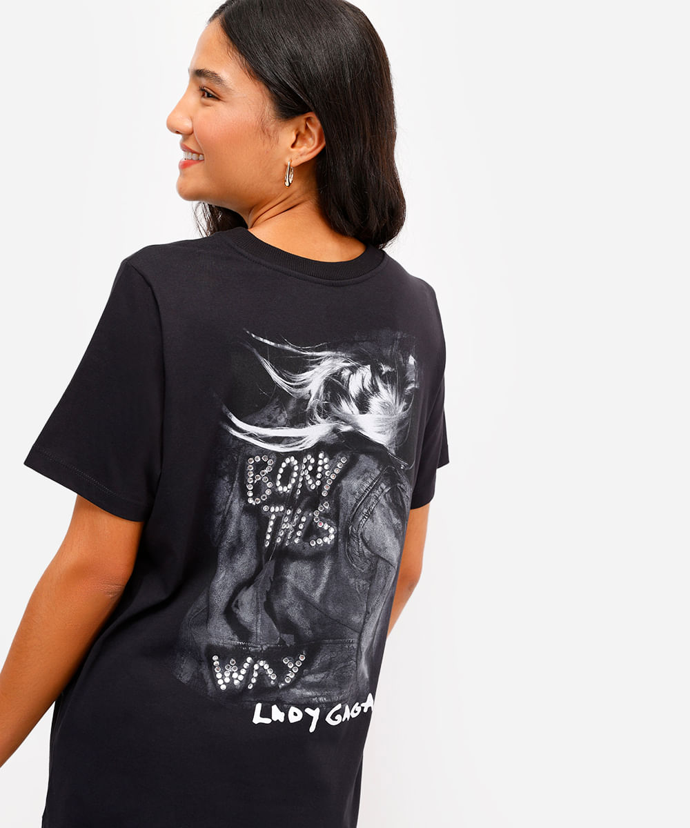 camiseta unissex de algodão lady gaga com brilhos preta