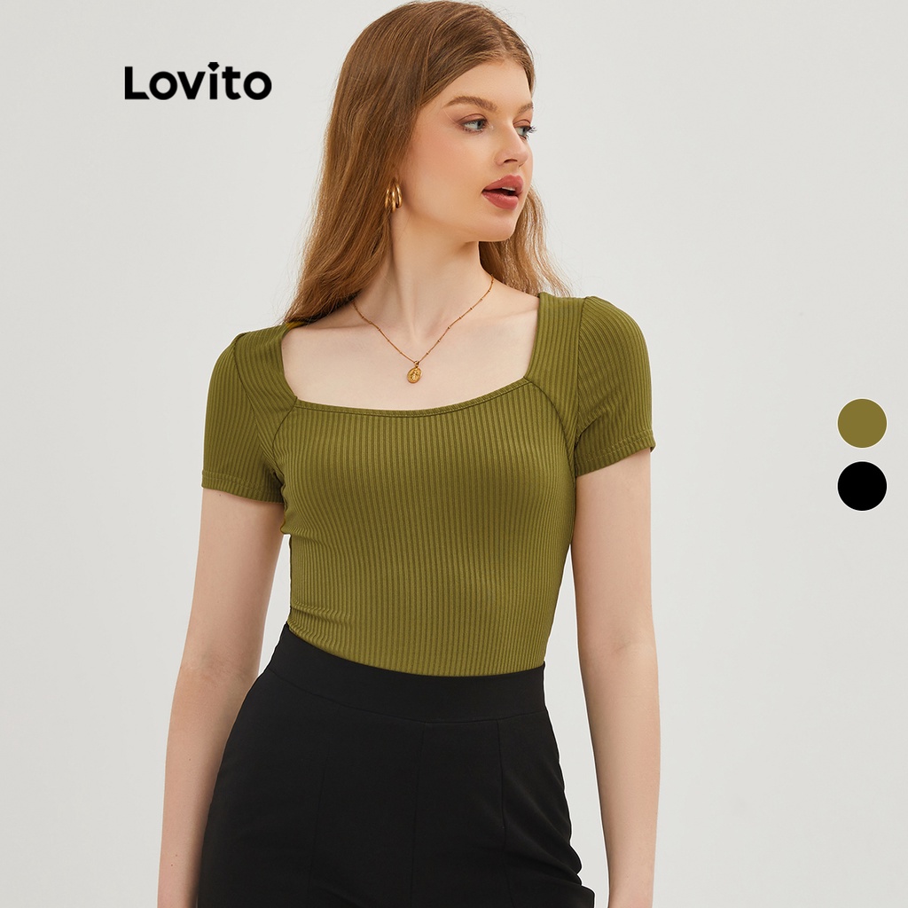 Lovito Blusa De Malha Feminina Vintage Com Gola Quadrada L20D243 (Verde/Preto)