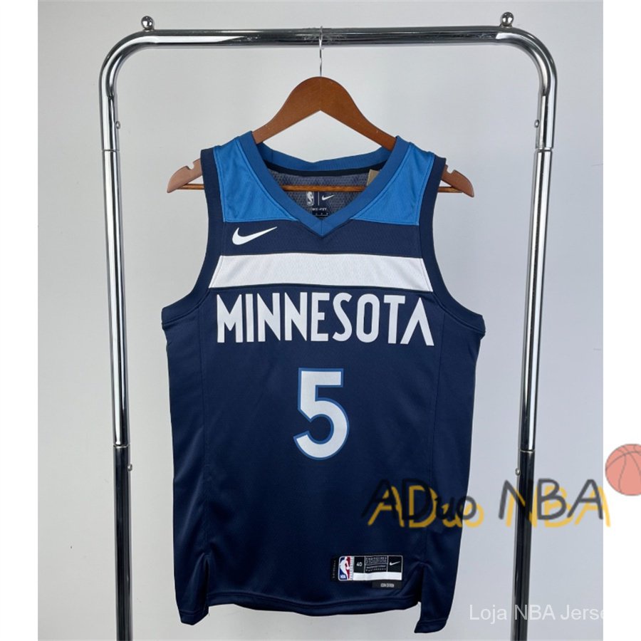 Hot pressed Camiseta Minnesota Timberwolves Anthony Edwards #5 Navy Icon Edition de basquete Swingman NBA Jersey sponsor logo