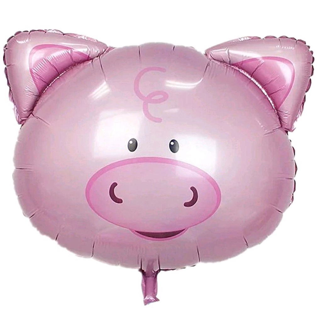 10 Balão Metalizado Animal Cabeça Porco Fazendinha Centro de Mesa 32x24cm