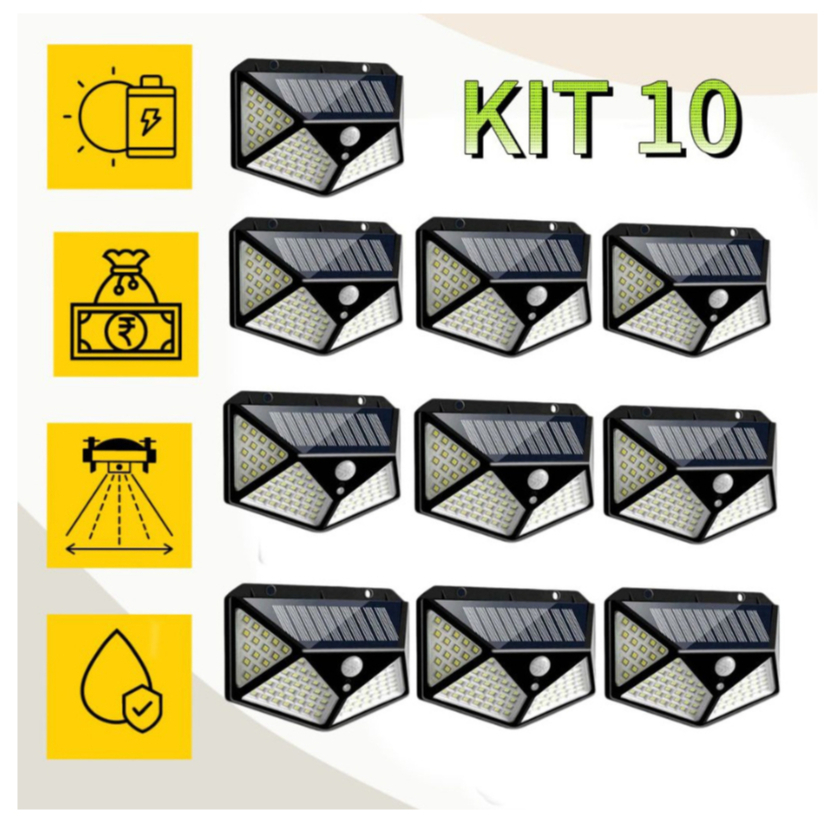 Kit 10 Luminária Solar 100 Led Externa Com Sensor De Movimento 3 Funções