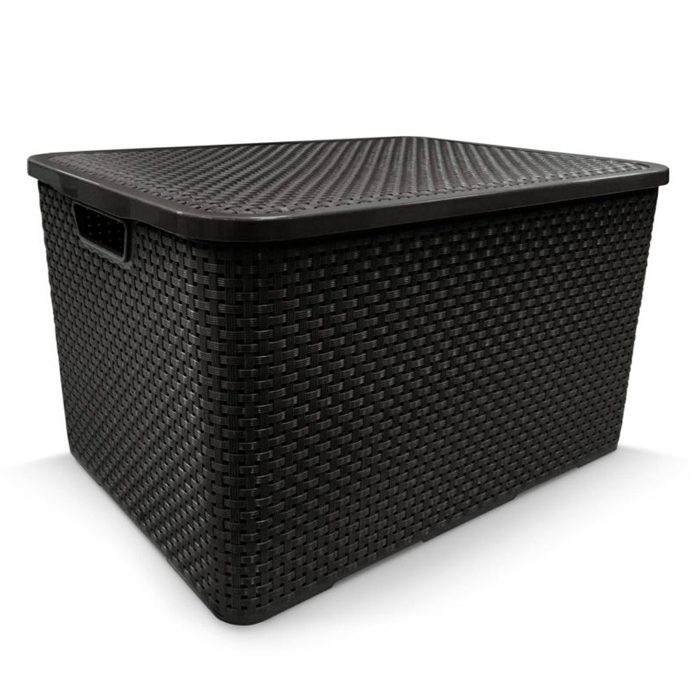 Caixa Organizadora Preta com Tampa Rattan 7 litros 15 litros 20 litros 40 Litros Brinquedos Armarios