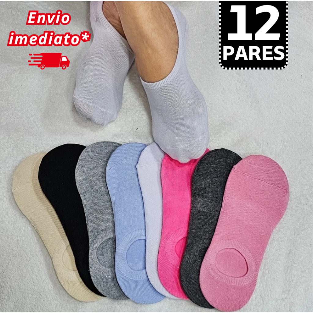 Kit 12 Pares Meia Sapatilha Feminina Ínvisivel com Silicone Algodão Atacado
