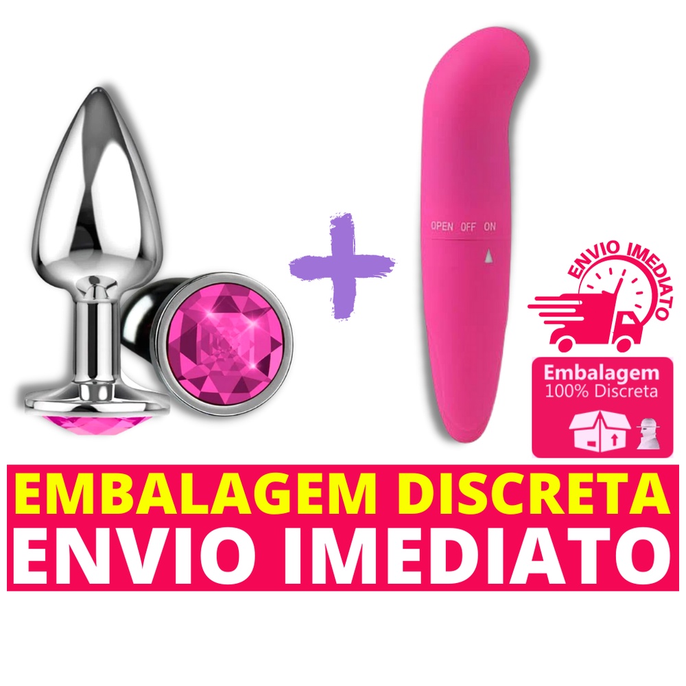 Vibrador Ponto G Estimulante Feminino + Plug Anal Jóia Aço Inox