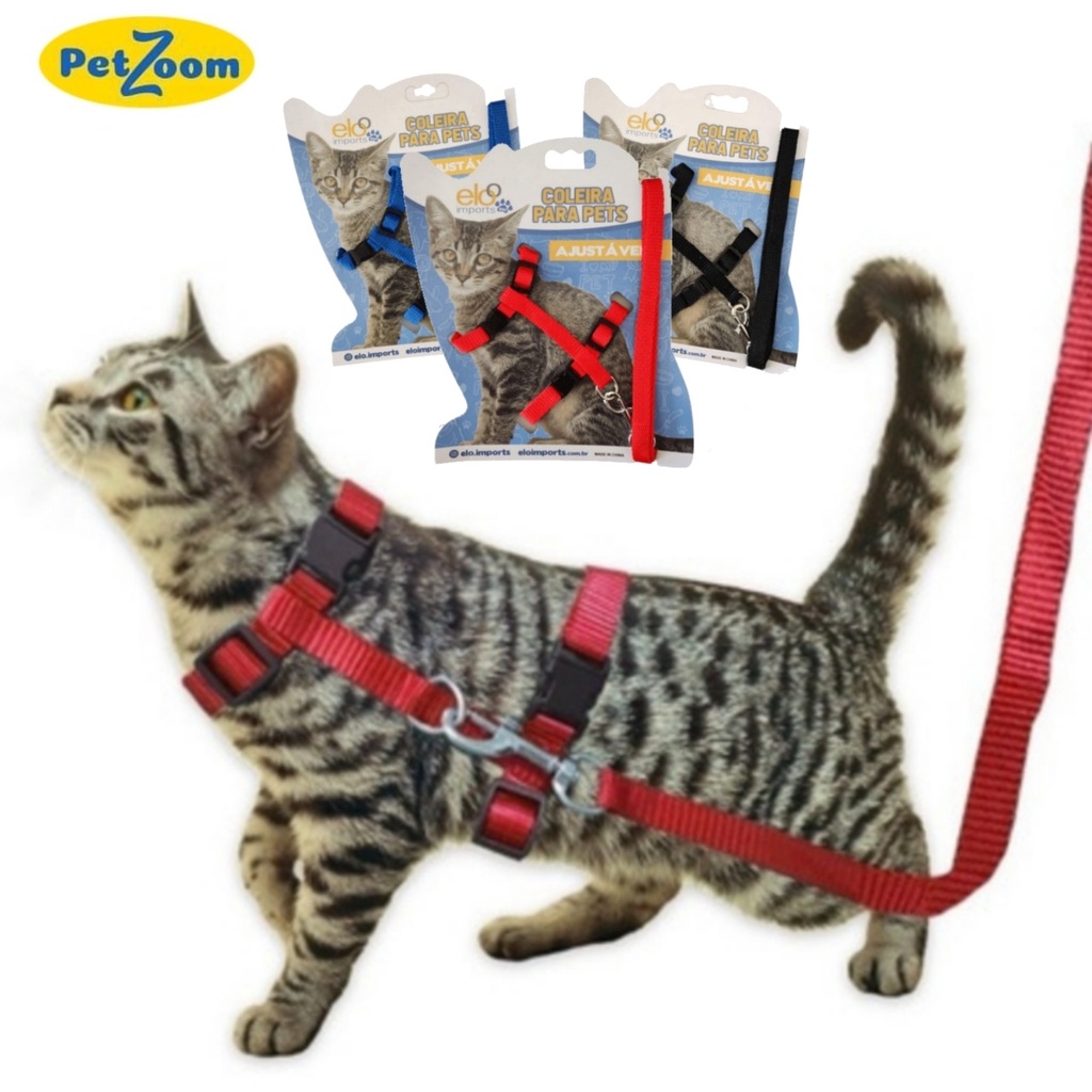 Coleira Peitoral De Gatos Pet Ajustavel E Guia