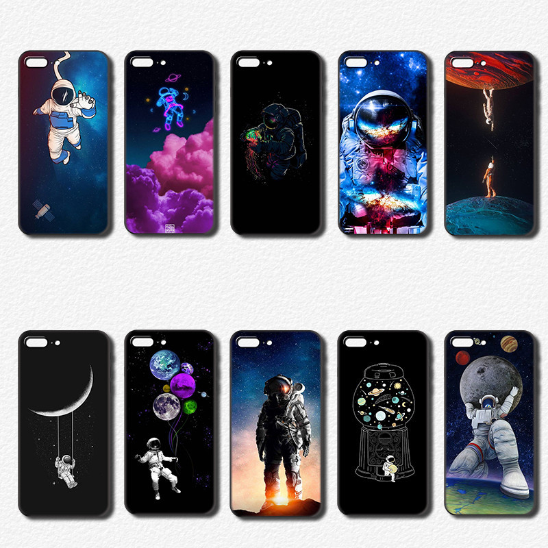 Estojo De Telefone Preto Macio E Moderno Para Samsung A22 A22S A23 A24 A30 A30S A31 A34 Astronauta Espacial