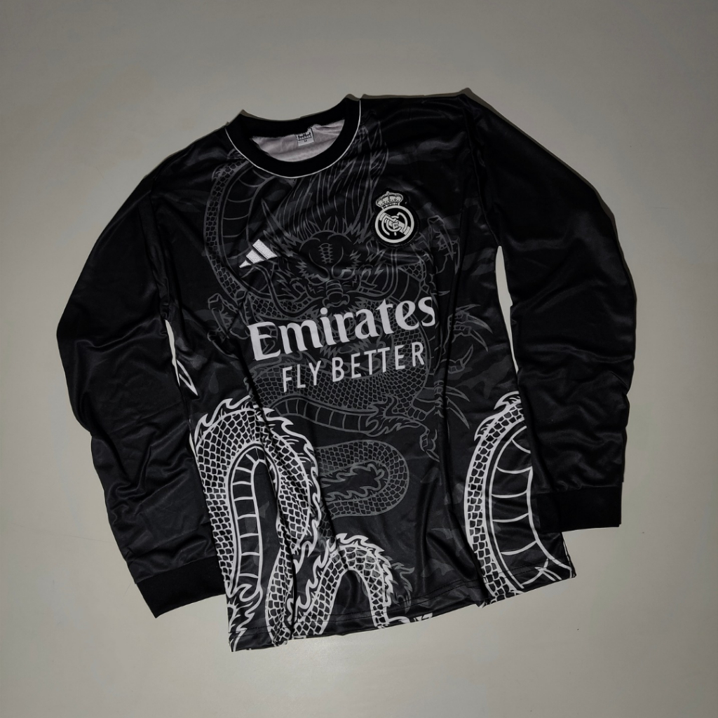 CAMISA DO REAL MADRID MANGA LONGA PRETA 1° LINHA