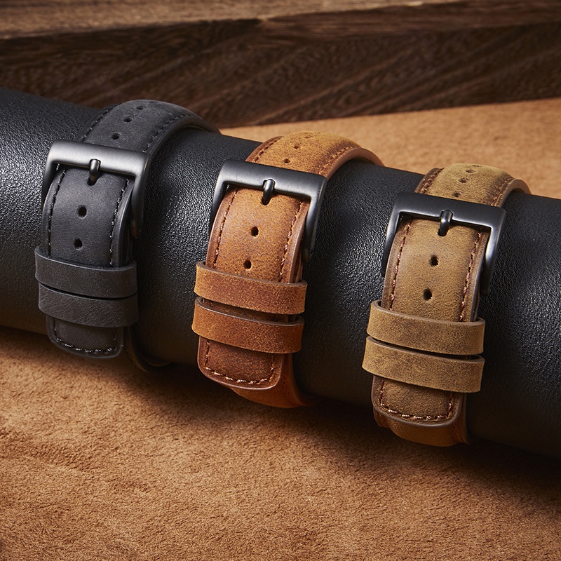 Homens Do Vintage Pulseiras De Couro Genuíno Cavalo Louco Relógio Militar Correias 20mm 22mm Quick Release Strap Watch Acessórios