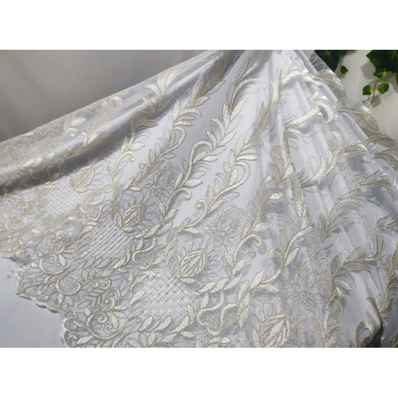 Renda tule bordado em flores arabescas off white 0,50x1,35(MEIO METRO LINEAR)