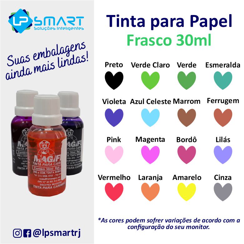 Tinta de Carimbo para papel 30ml várias cores para decorar embalagem caixa envelope sacolas kraft e tags