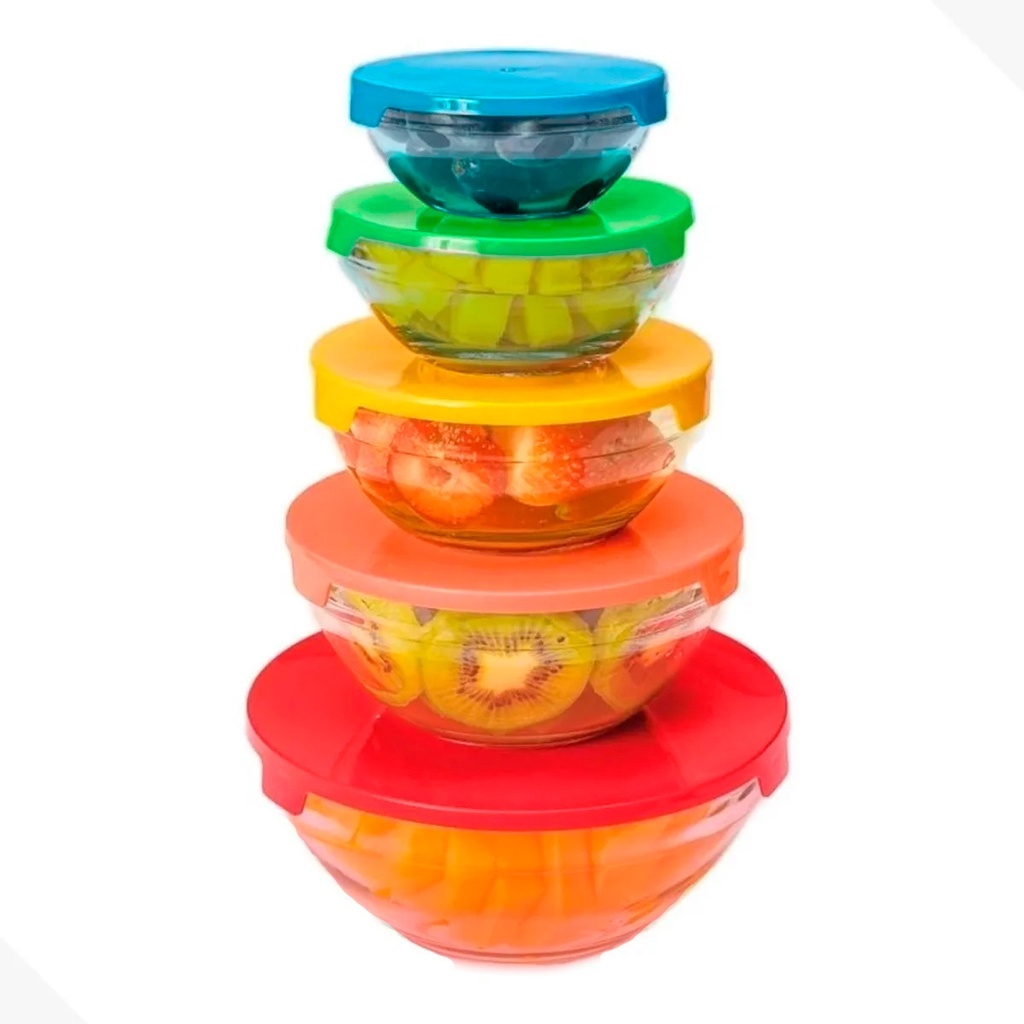 Conjunto De Potes De Vidro Com Tampa (TIGELAS) 5 peças Jogo Potes bowl