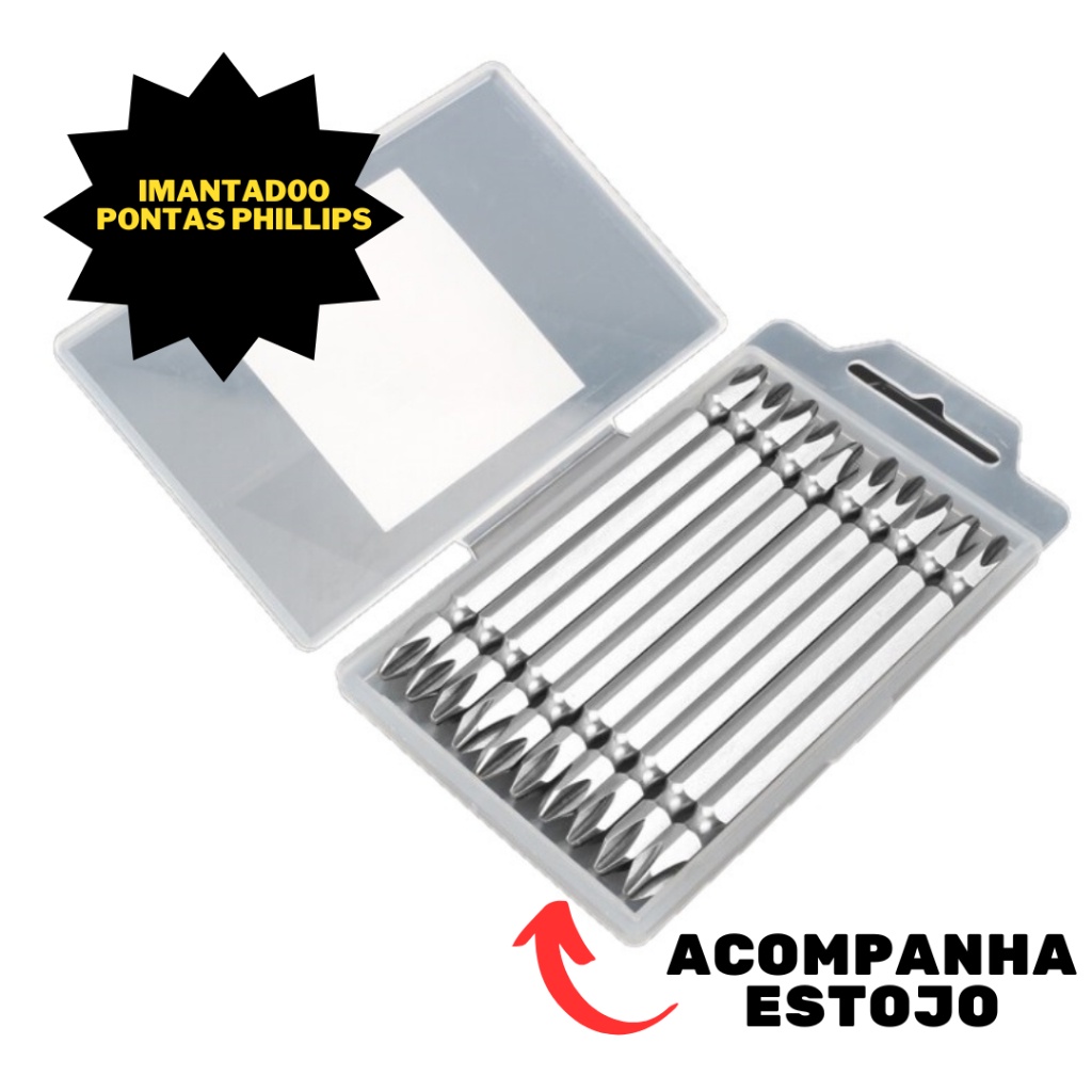 Kit Jogo De 10 Bits Ponteira Magnetica Ph2 Ponta Dupla Anti Espanamento