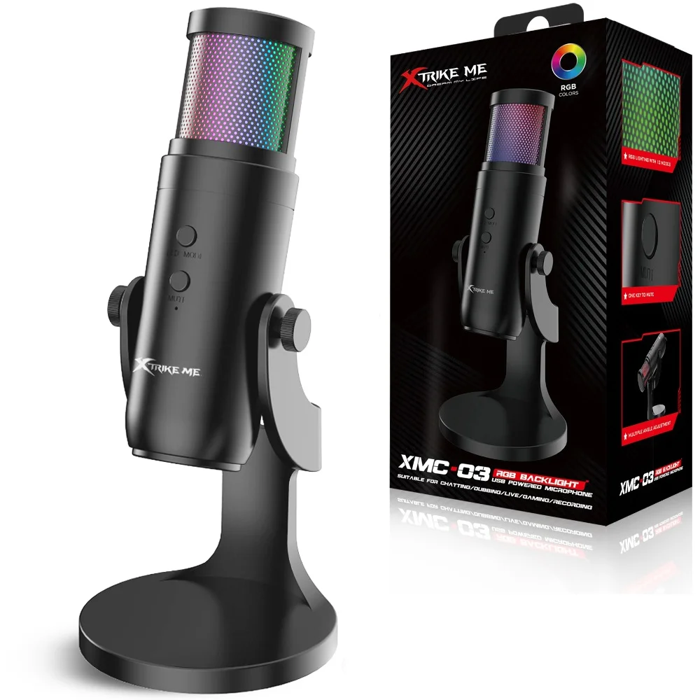 Microfone Condensador Gamer Profissional Com LED RGB Xtrike Me - Xmc-03