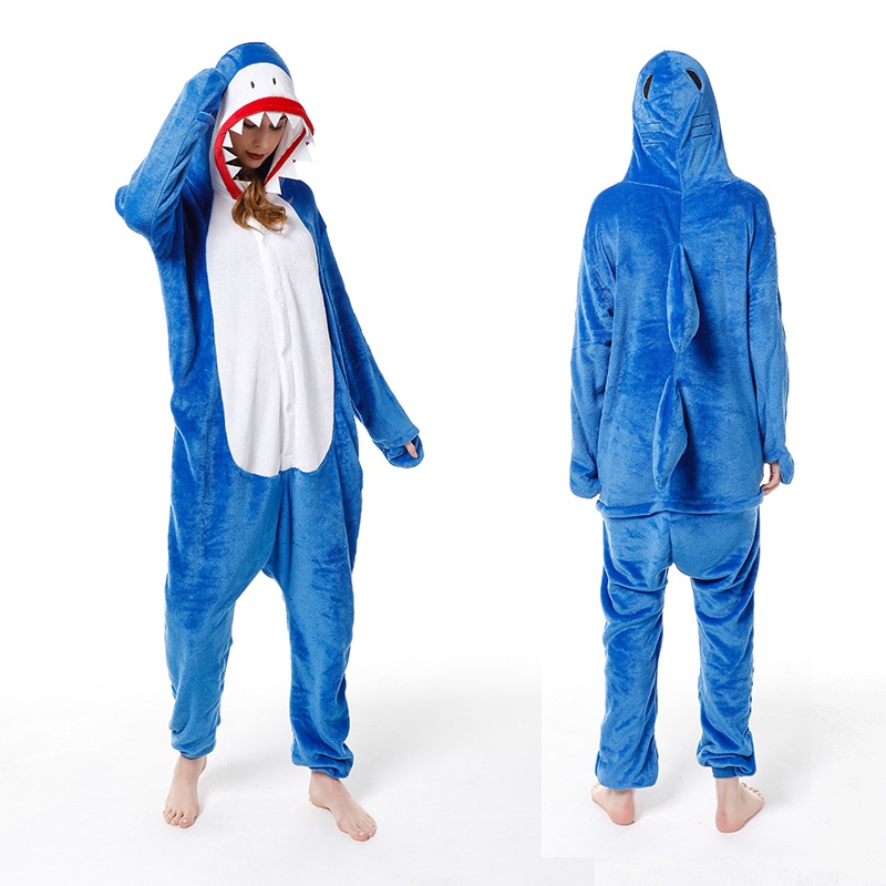 3D Tubarão Animel Cosplay Kigurumi Adultos Mulheres Pijama Inverno Quente Macacão Bonito Engraçado Macio
