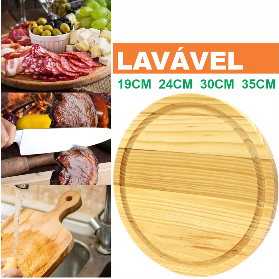 Tábua Petisqueira Corte Servir Pizza Queijo Frios Prato Servir Madeira 19cm 24cm 30cm 35cm Tabua Mesa Posta